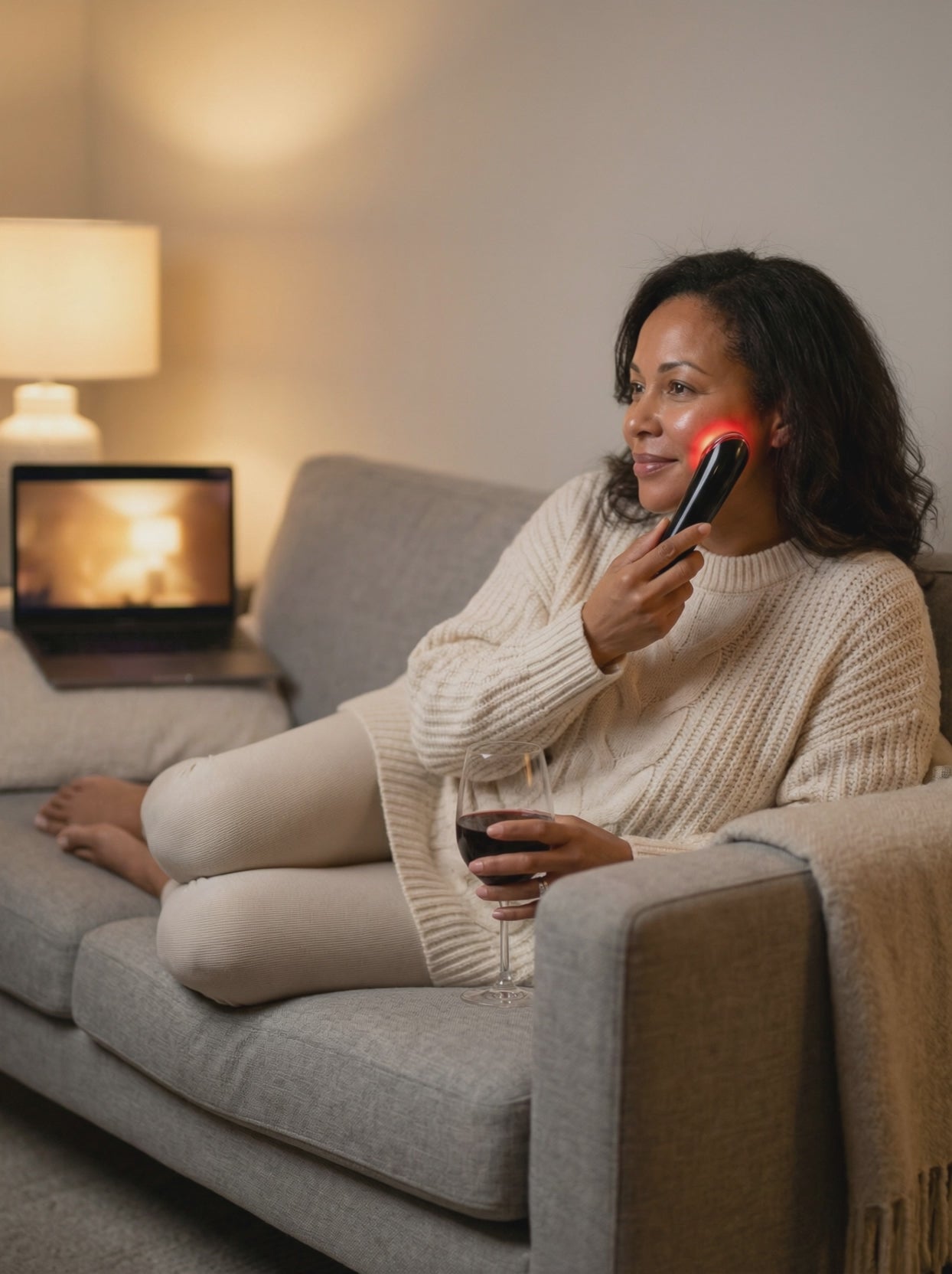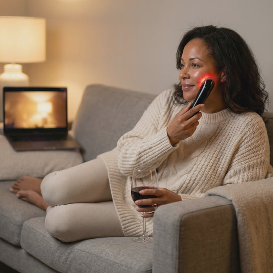 Use red light while your coffee brews. The gentle warmth increases circulation, reducing puffiness and giving you a natural glow before makeup.